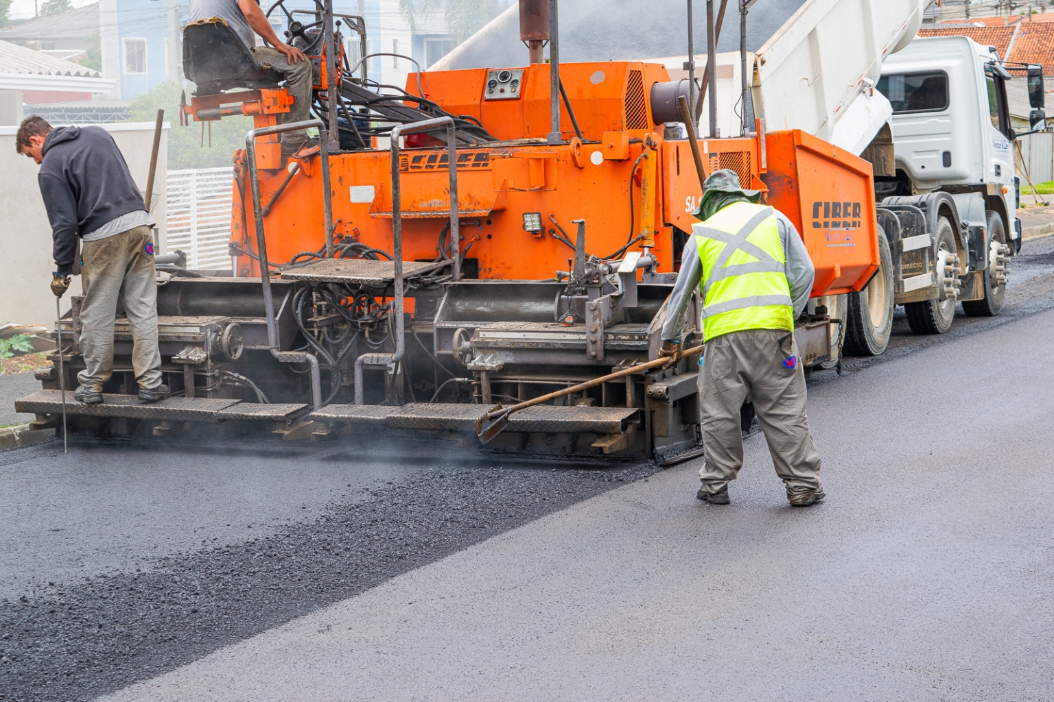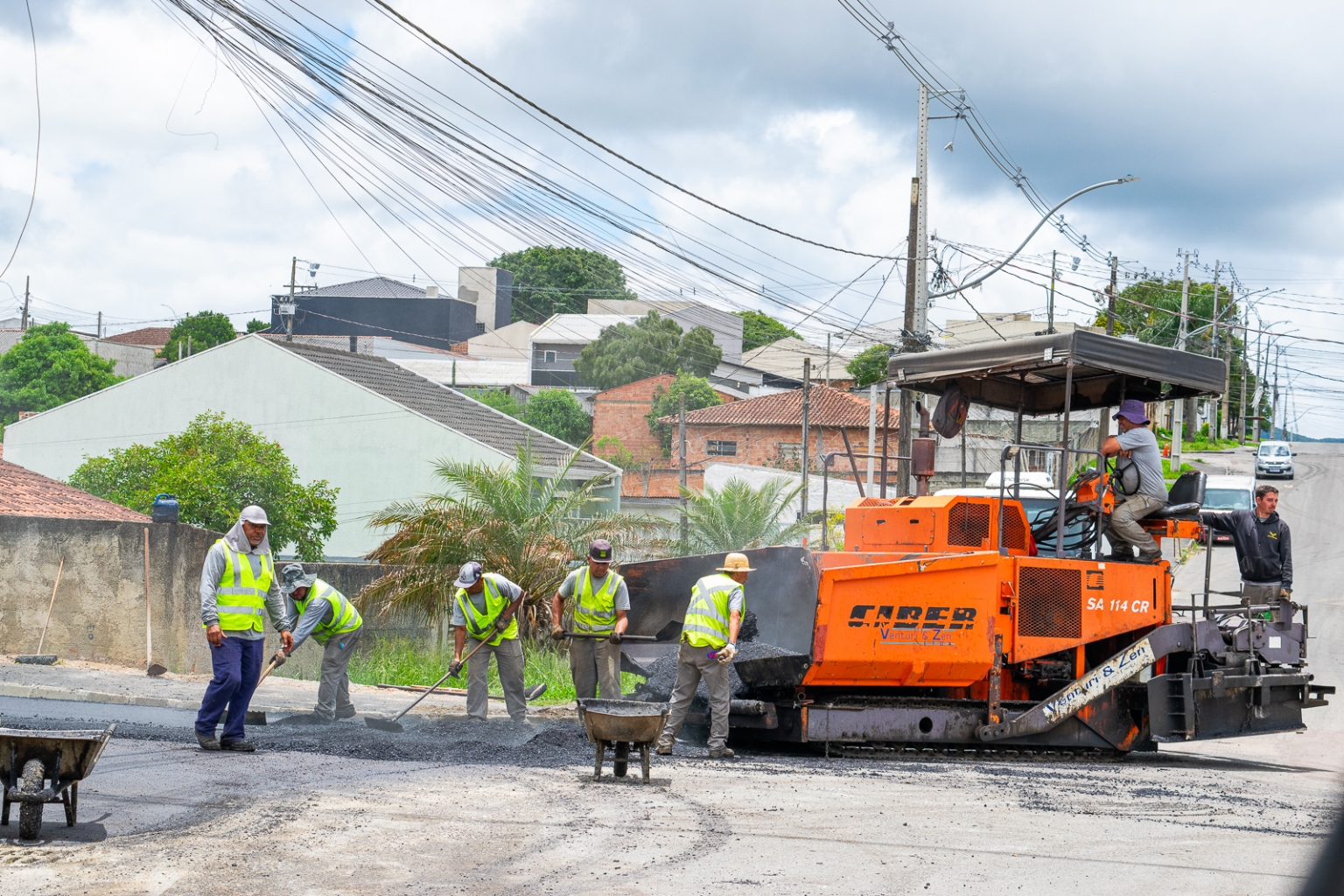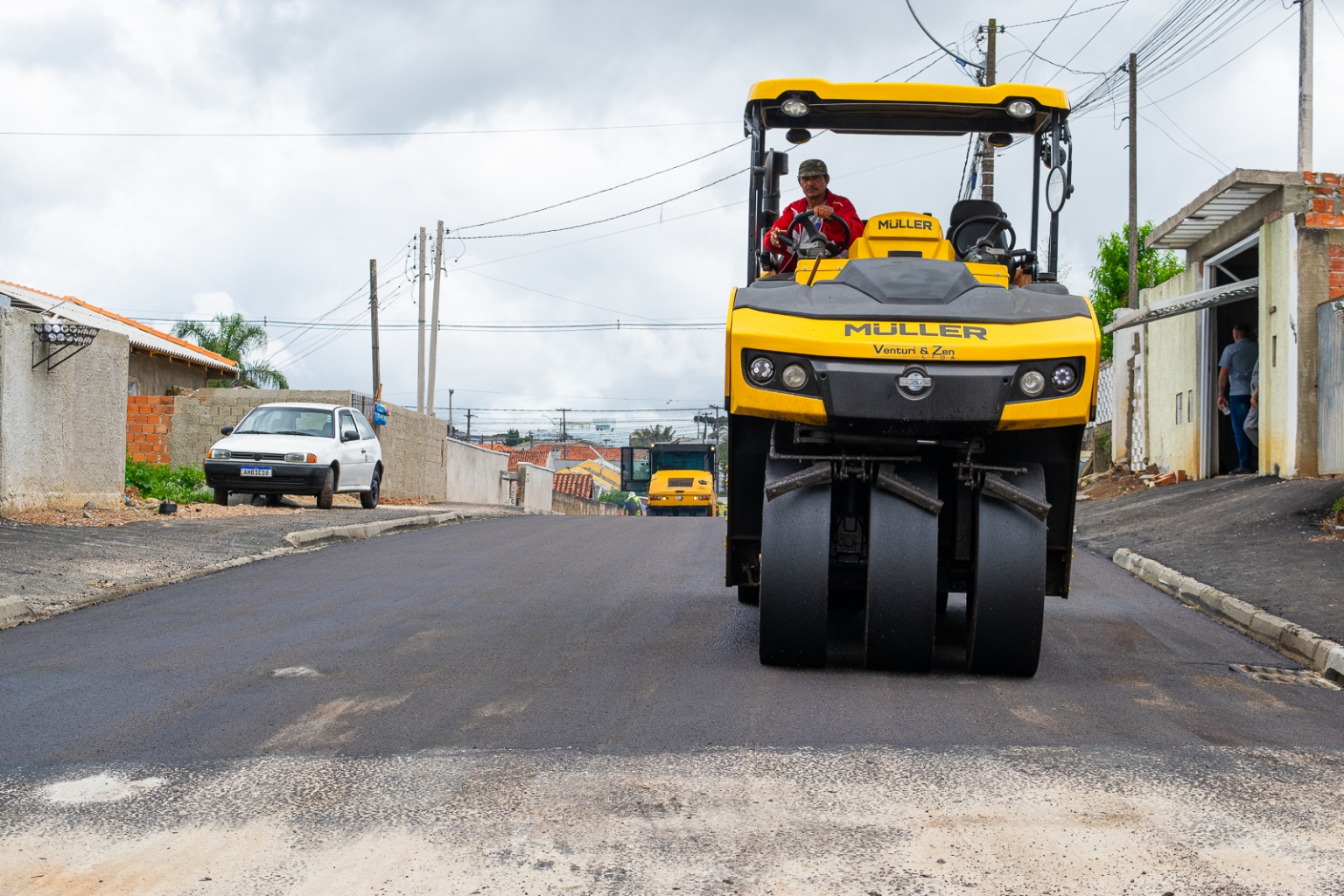 de asfalto nos primeiros trechos das obras retomadas no Jardim Bela Vista. A