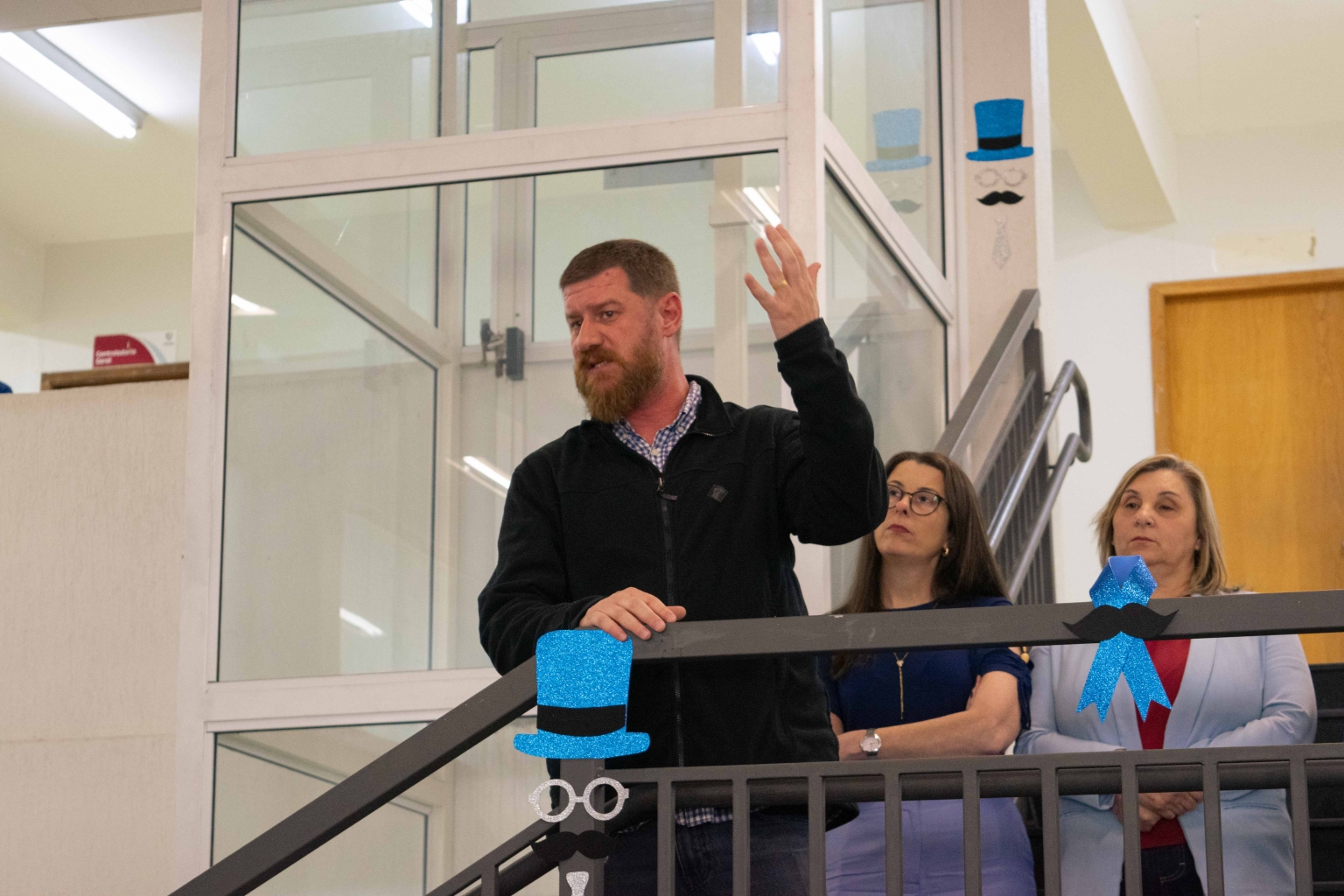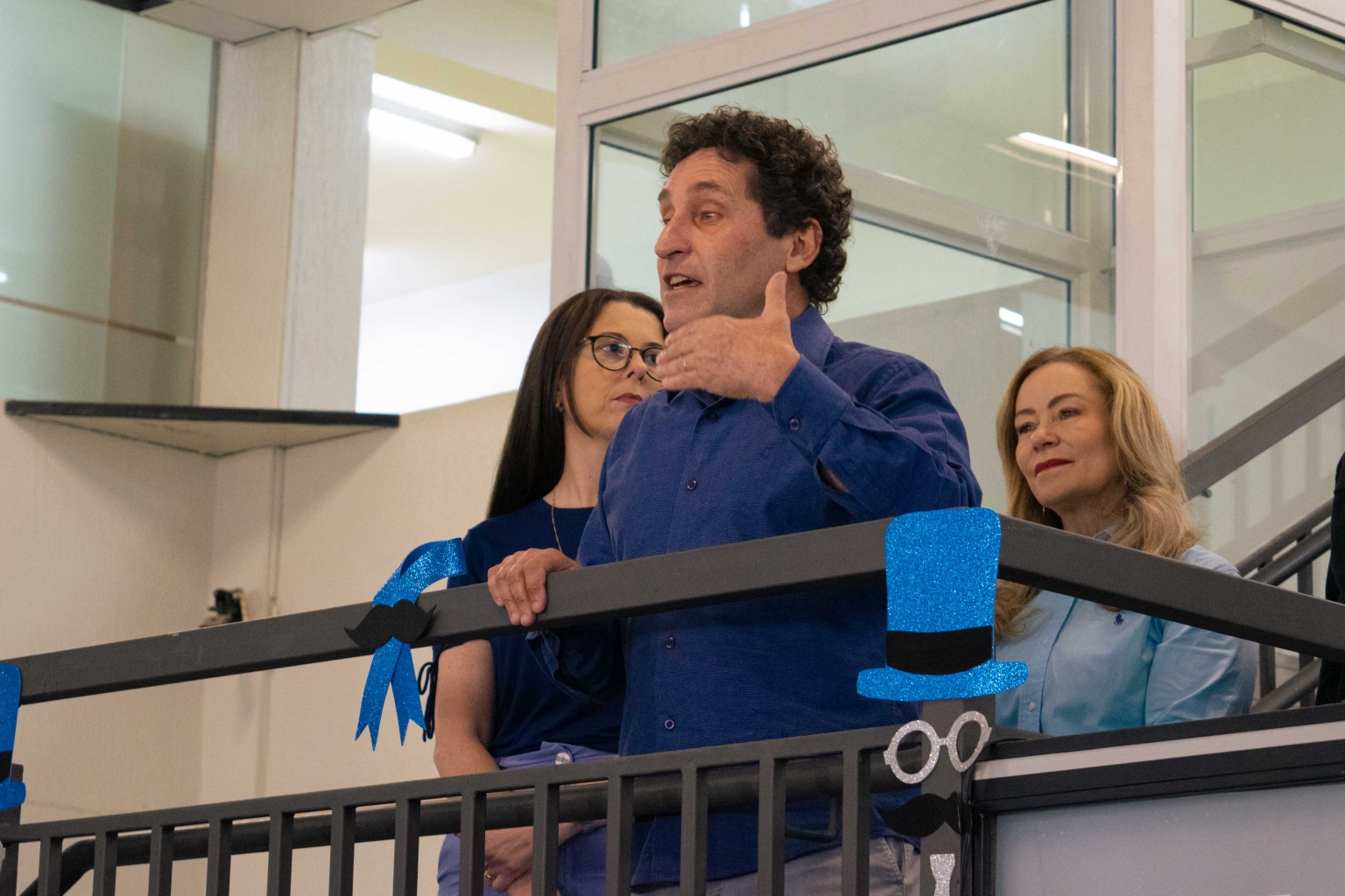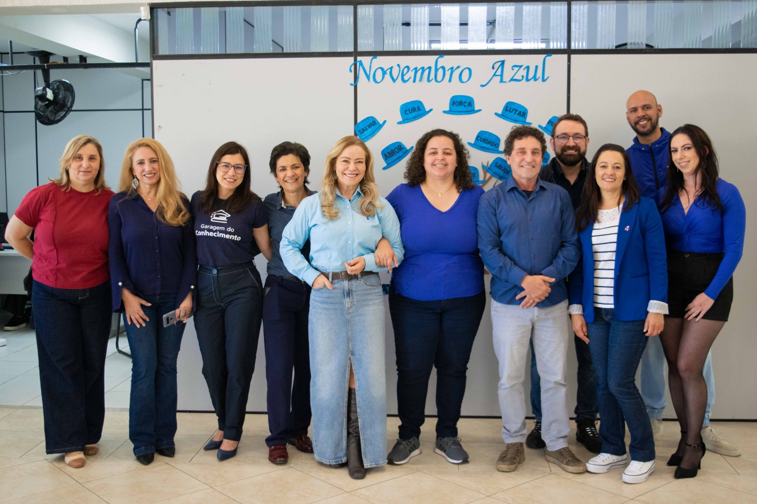 azul e participaram de uma breve palestra com o Dr. Jacomel, que abordou temas