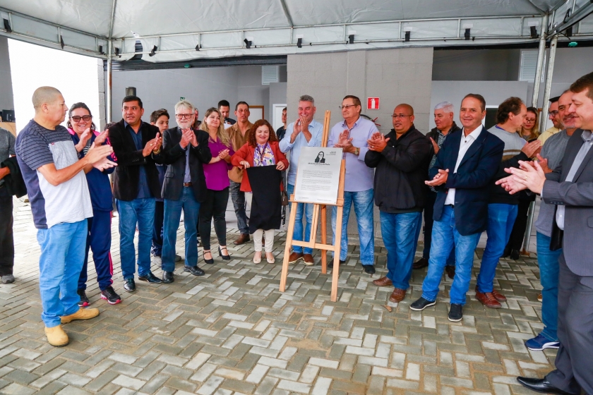 Durante a inauguração, foi prestada uma homenagem aos familiares da ex-servidora da Secretaria de Assistência Social Shirlei Sureck Pires de Paula.